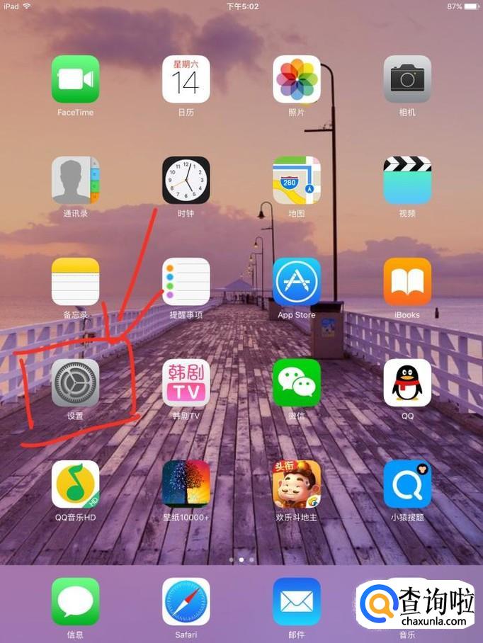其实,iPadde 截屏方式与苹果手机一样,同时按住Home键和锁屏键即可。但有些人操作不便便会截不到。所以还有一种方法是先打开“设置”。