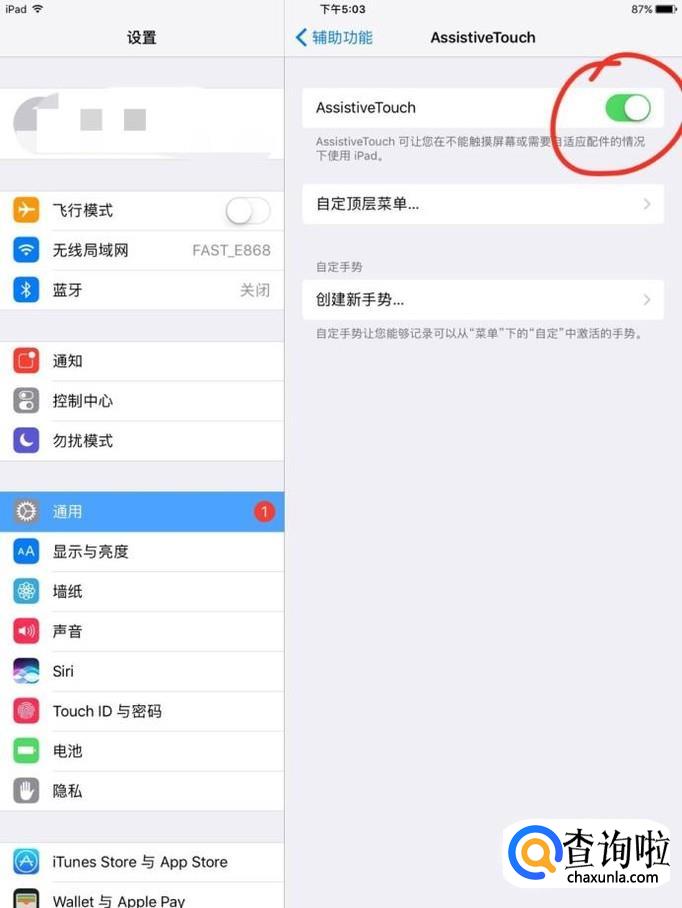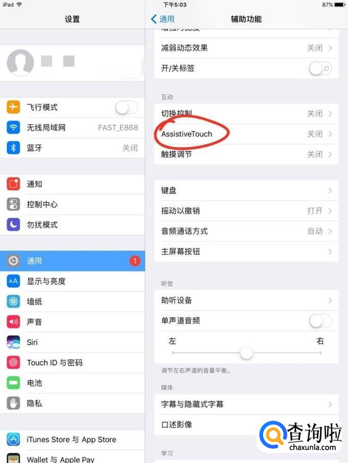 其次,点开“通用”---“辅助功能”---“AssistiveTouch”---将“AssistiveTouch”这个功能打开。