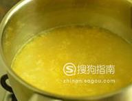 在小米中加入南瓜泥,在煮的过程中注意搅拌不要让小米粘锅。