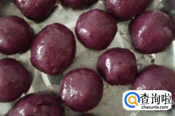在紫薯中加入适量糯米粉和水,与紫薯揉匀至表面光滑。