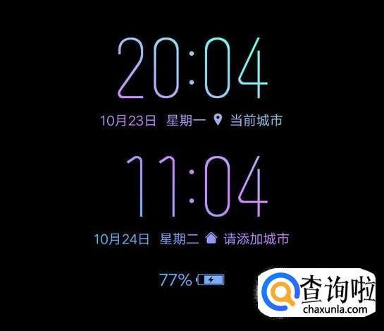 熄屏时钟功能还为身处不同时区的用户,提供了双时钟样式,上边为当前城市的时间,下边就可以添加成家乡城市的时间。这样在身处异地时,不需要解锁,也不用大脑转换时间,就能直接看到2地的时间。这里唯一需要注意的是,必须要用默认的时钟样式才能开启熄屏双时钟。
