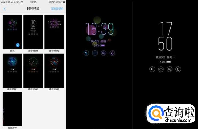在这儿可以对熄屏时钟进行详细的设置,可以设置它的显示时间和时钟样式。可以按自己的喜欢好来更换时钟样式。