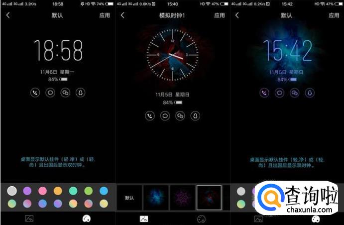 系统自带了三种时钟样式:数字时钟、模拟时钟、侧屏时钟。