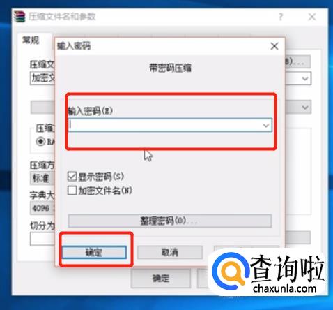 我们在输入框里面输入想要设置的密码即可,输入完成后单击下方的确定按钮。这时桌面多了一个压缩文件。