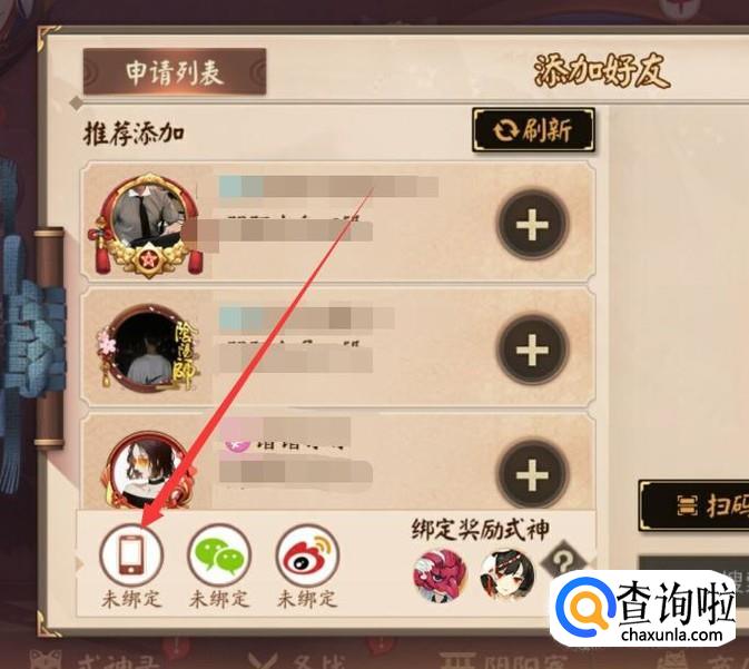 进入之后,点击图示位置的未绑定。
