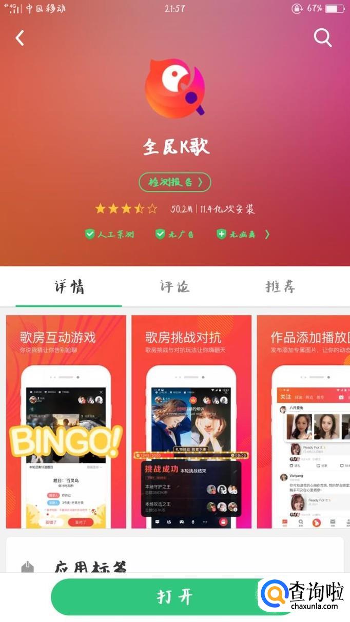 在软件商店里搜索全民K歌软件,并下载。