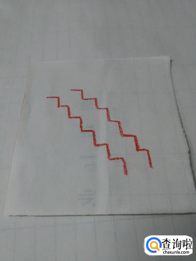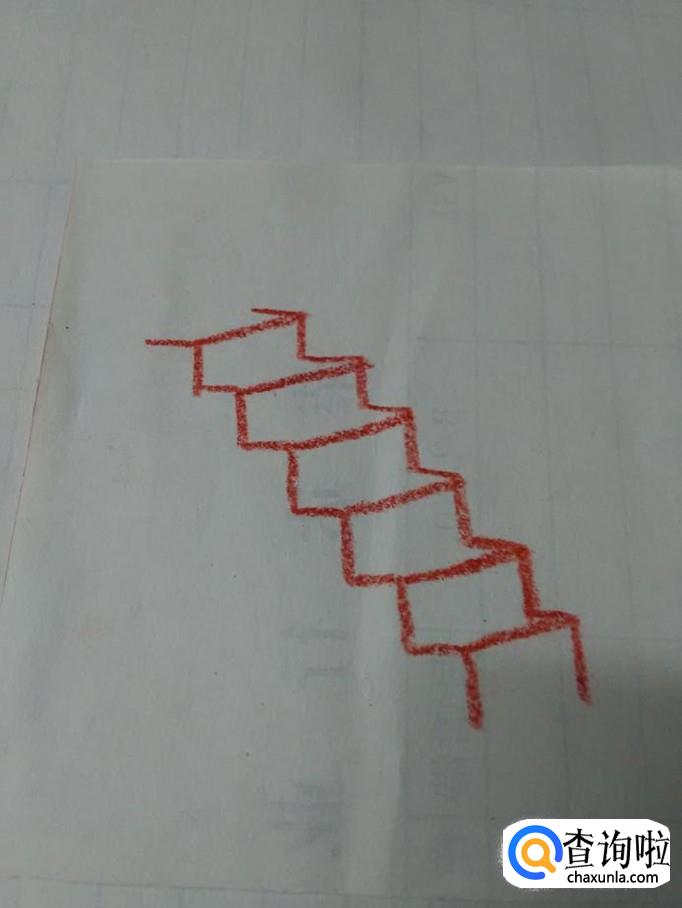 在两排折线的凹陷处,再用一条条直线连接起来,表示台阶的里面。