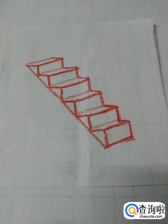 最后,用一条长长的直线将左边折线连接起来,楼梯就画完了。