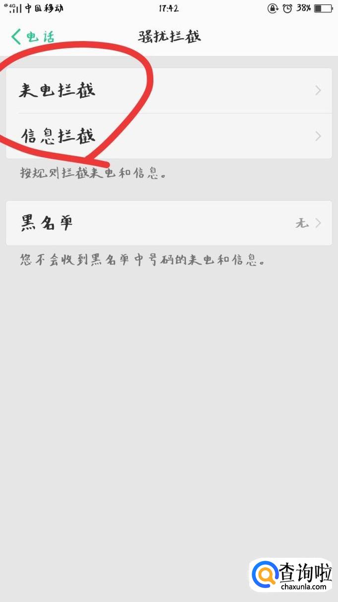 也可以点击“来电拦截”或“短信拦截”,成功添加后手机将自动拦截该手机号码的来电与短信。