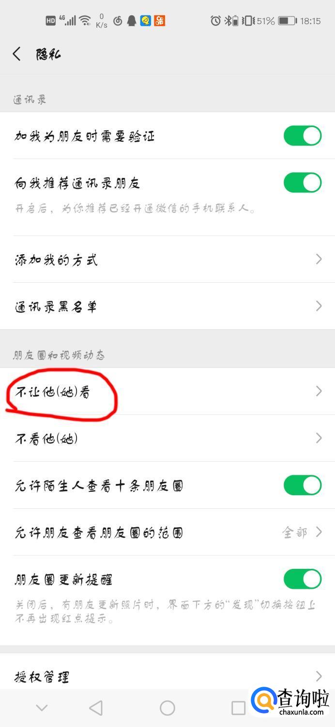 打开微信登录,依次点击“我的”,“设置”,“隐私”,“不让他看”。点击加号图标,添加某个人即可。