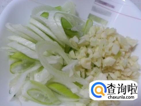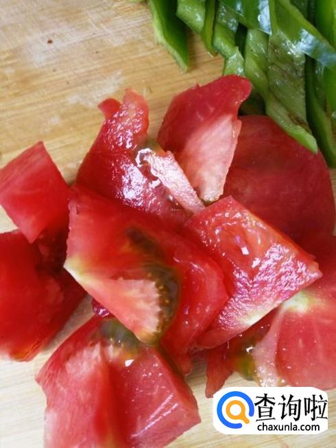 把蔬菜洗干净放在碗里,西红柿切成块状,把大葱切成片状,大蒜剁成碎末状。