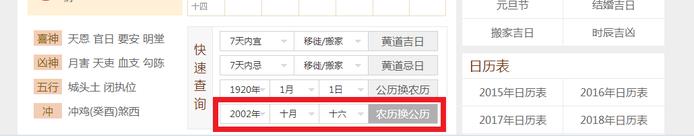 在农历转阴历的那一排输入要查询的日期,然后点击农历转阴历。