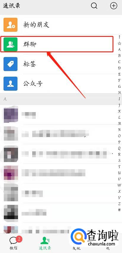 换了手机之后,进入通讯录页面,找到【群聊】选项: