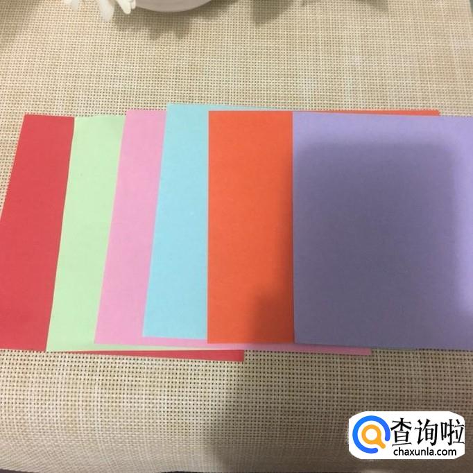 首先我们要准备六张不同颜色的正方形折纸。