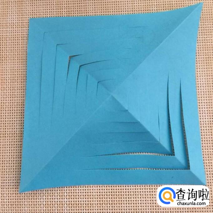然后把剪好的正方形折纸摊开,如下图所示。