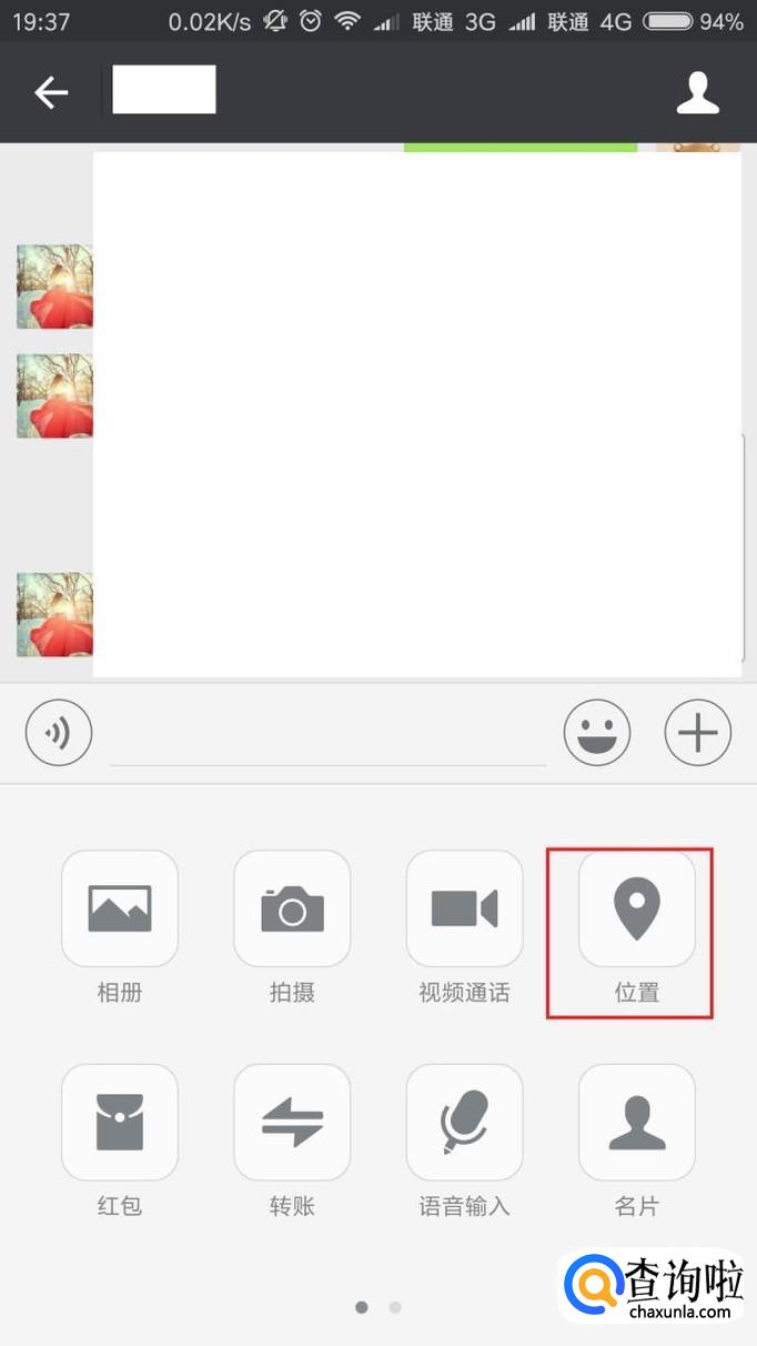 接下来,在弹出的页面中,点击“发送位置”菜单选项。