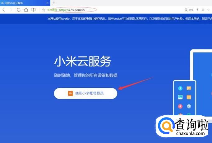 在浏览器的地址栏中输入i.mi.com,访问小米服务官网