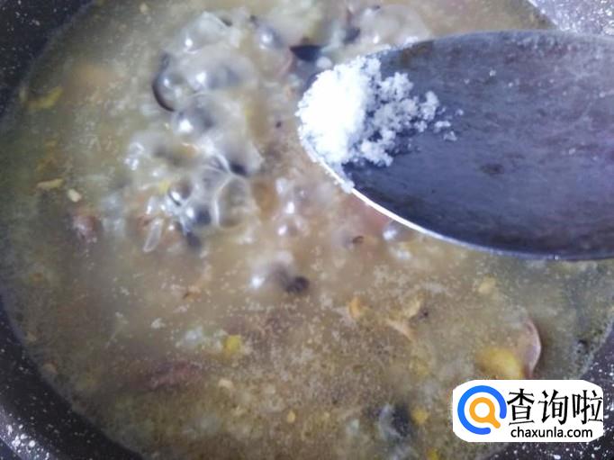 然后加适量的盐、几粒味精。