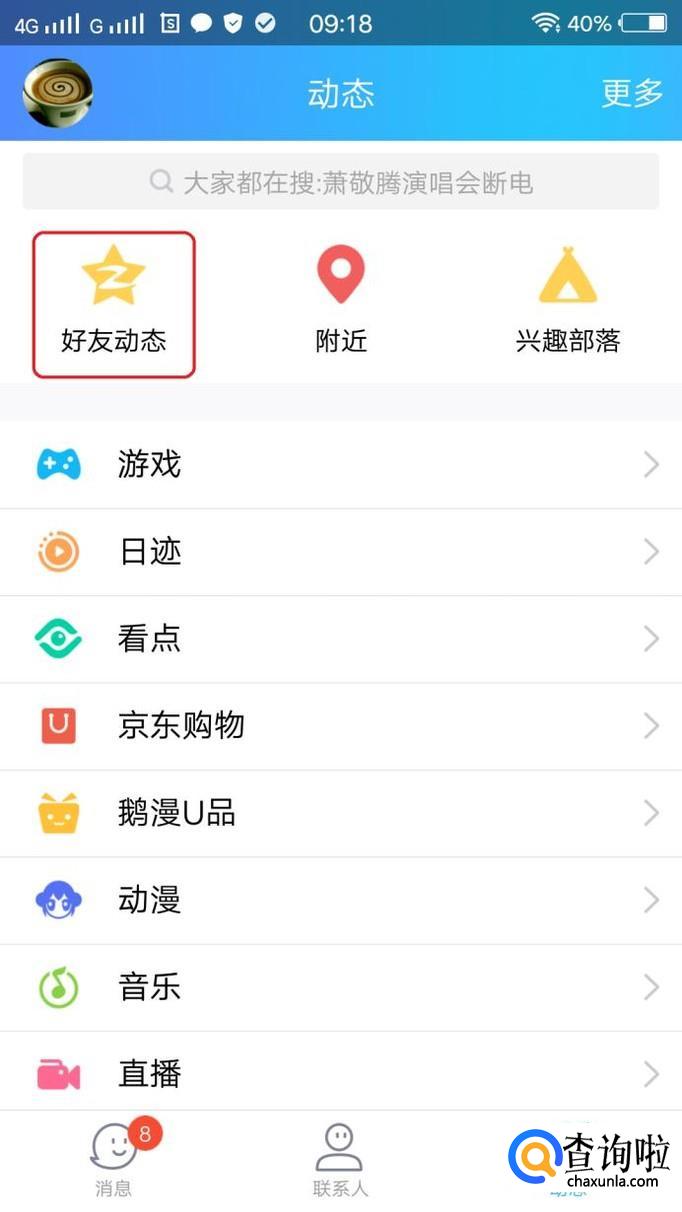 然后,我们打开QQ空间,从“好友动态”里面进入,找到“说说”点击进入。