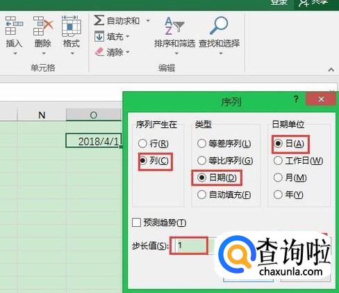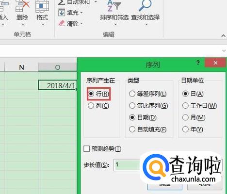 序列选择行或列,类型选择日期,日期单位选择日,步长值选择1,终止值就是终止日期
