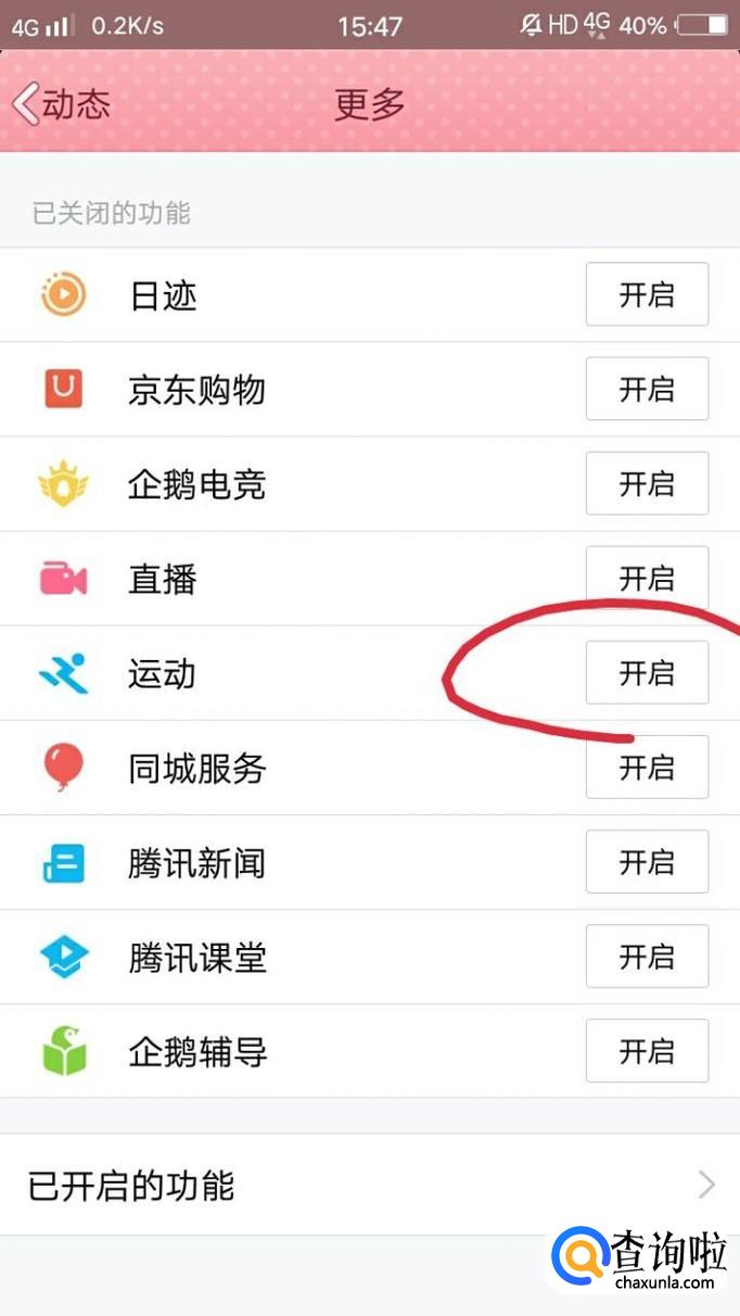 往下滑找到运动,点击右边的开启。