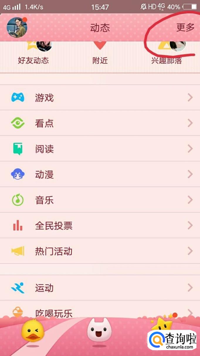首先打开手机QQ,然后点击我的,再点击右上角的更多,去下图所示。