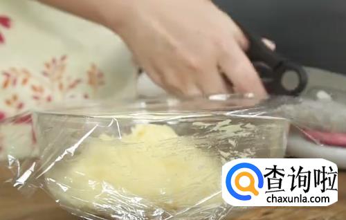 低筋面粉筛入椰蓉中搅匀,倒进黄油糊里搅拌均匀,盖上保鲜膜静置30分钟。