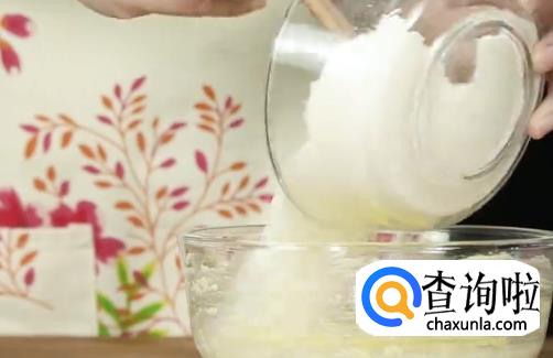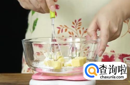 黄油软化后加糖分,用打蛋器搅拌均匀。