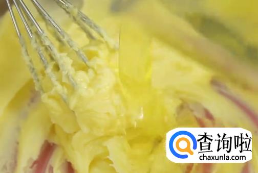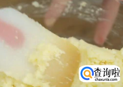 蛋清分两次加入黄油中搅拌均匀。