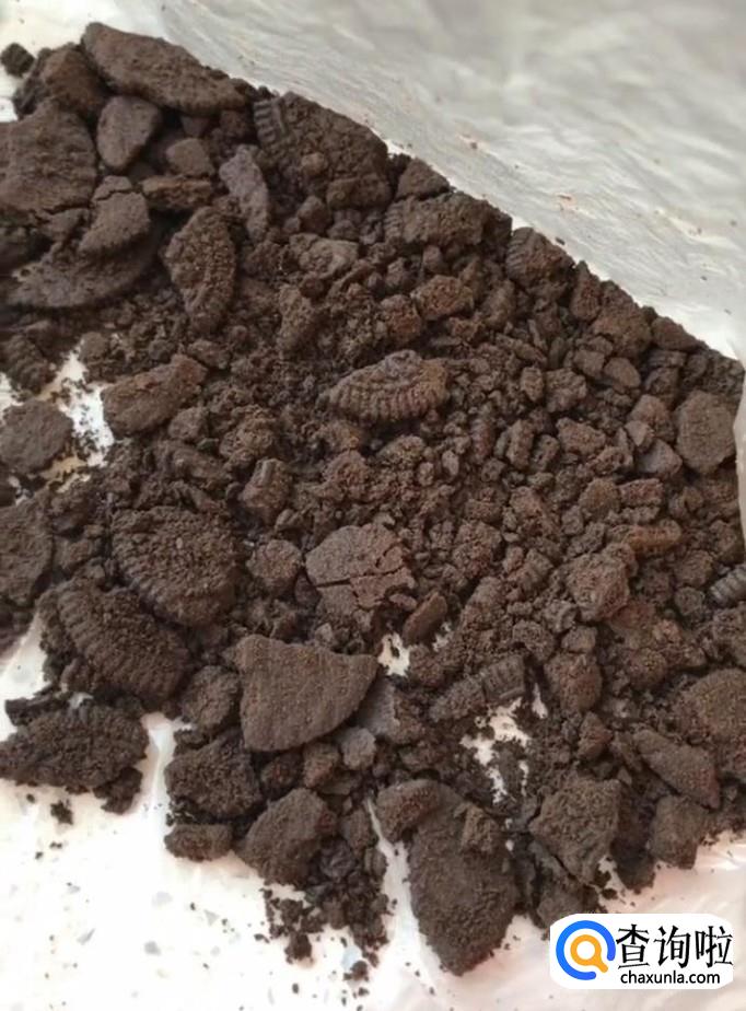 然后我们酱奥利奥饼干放在塑料袋中,用擀面杖压碎