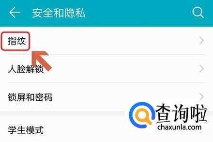 然后返回到刚才的安全和隐私界面,这次我们点击“指纹”,在指纹页面依次选择“指纹管理”-“新建指纹”