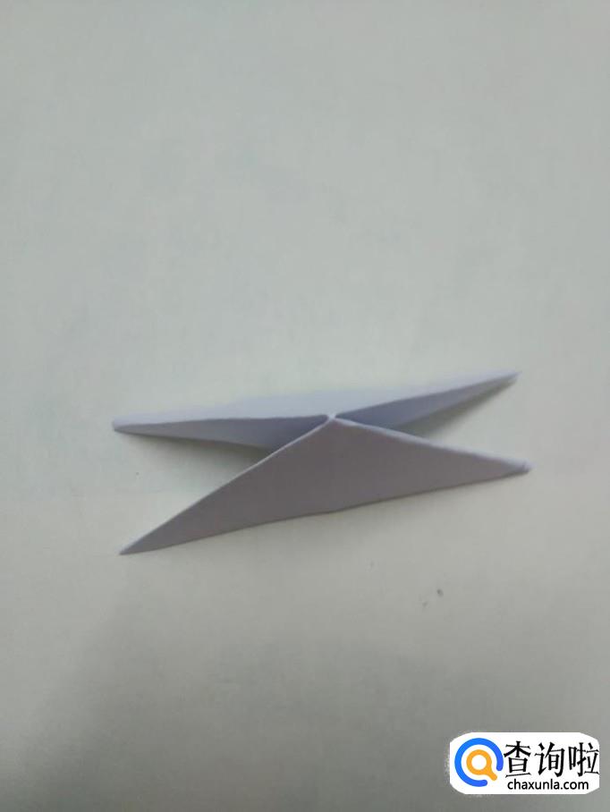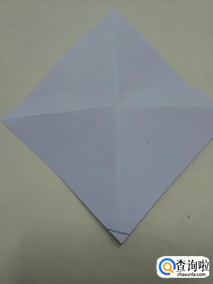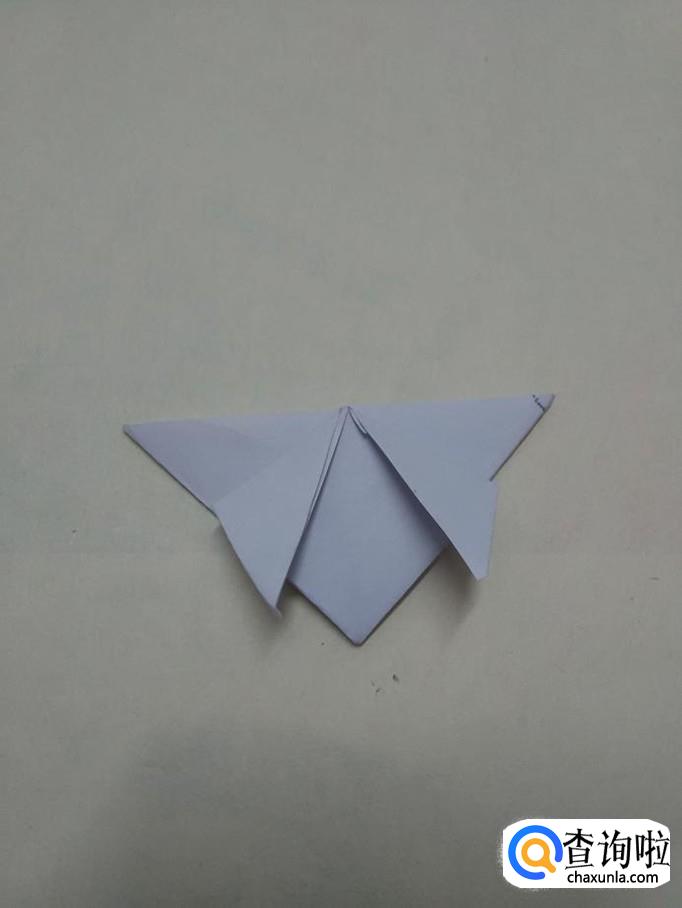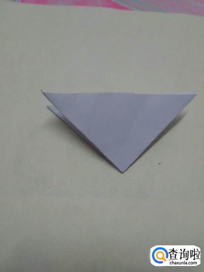两手捏着底边上的中点,把两边的角往中间挤,挤成如下的形状。