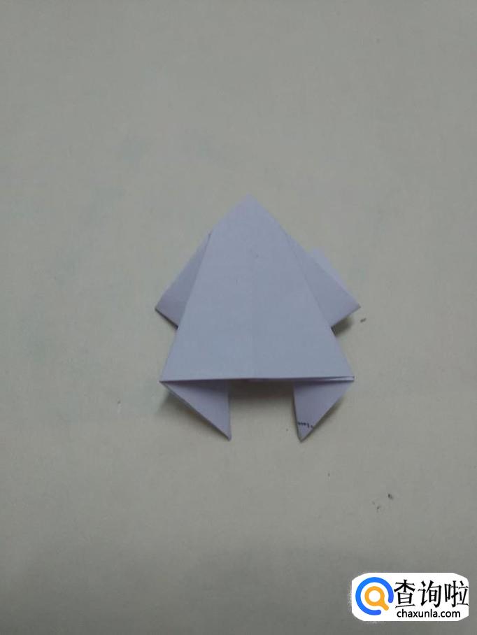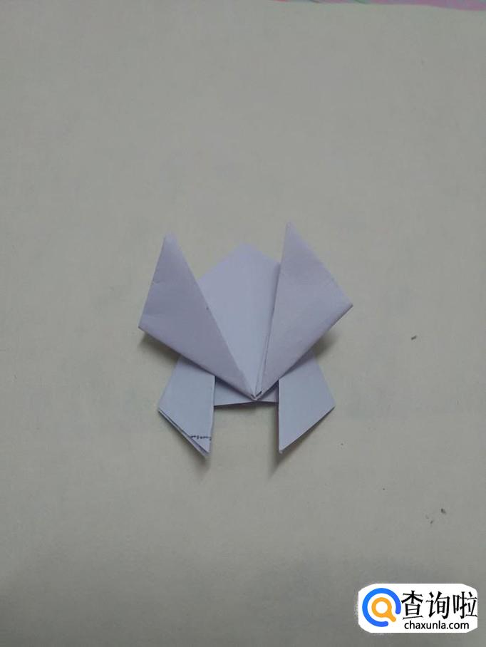 把上面两个角往下折,折成青蛙的两只前腿。