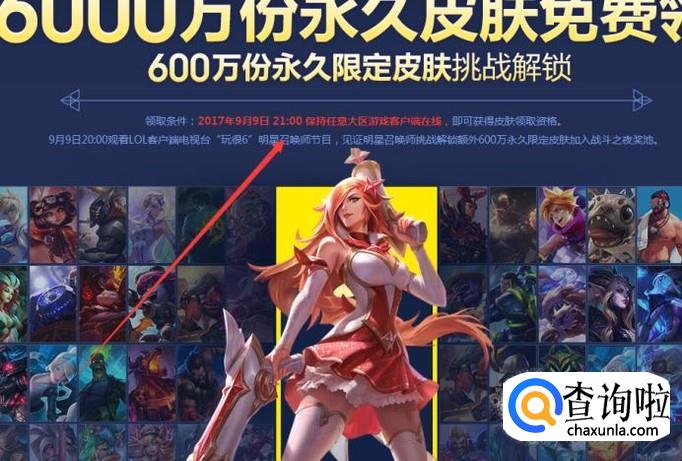 活动内容是只要你准点到,就可以免费领取一款皮肤,而且在此活动期间6倍的金币和经验。不过如果你邀请好友参加这个活动的话,你也可以领取一款期限的皮肤。