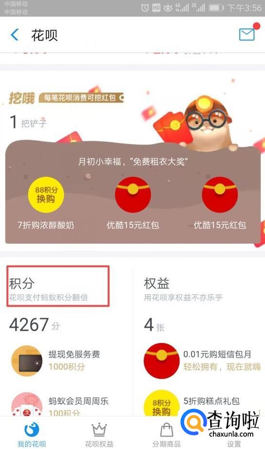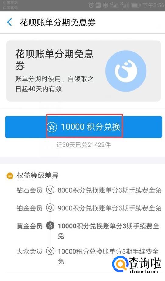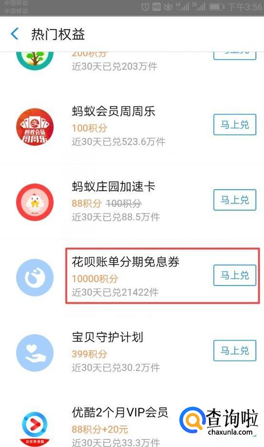 弹出的界面,我们找到花呗账单免息分期券,之后点击马上兑;