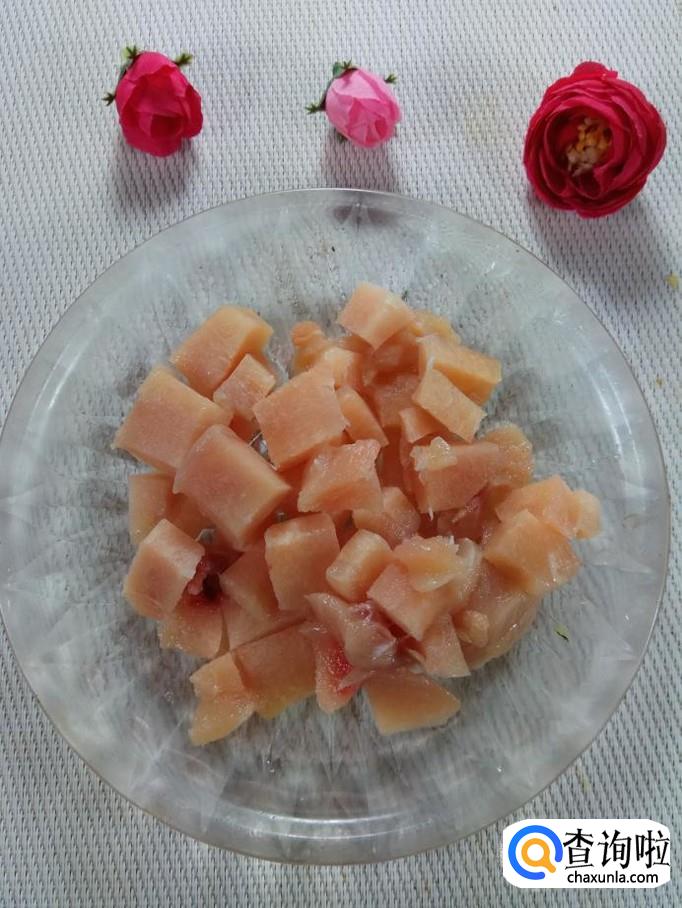 准备一块鸡胸肉,洗净后切成小块。