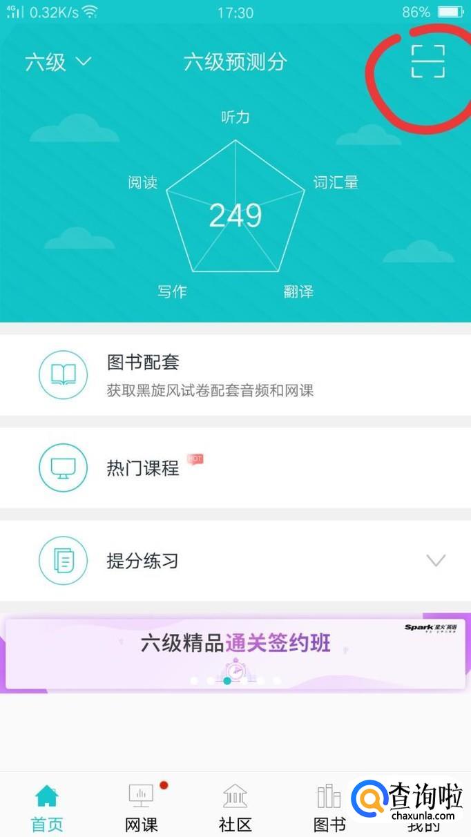 首先扫面试卷背面的二维码,或者直接在应用商店里下载一个星火英语。