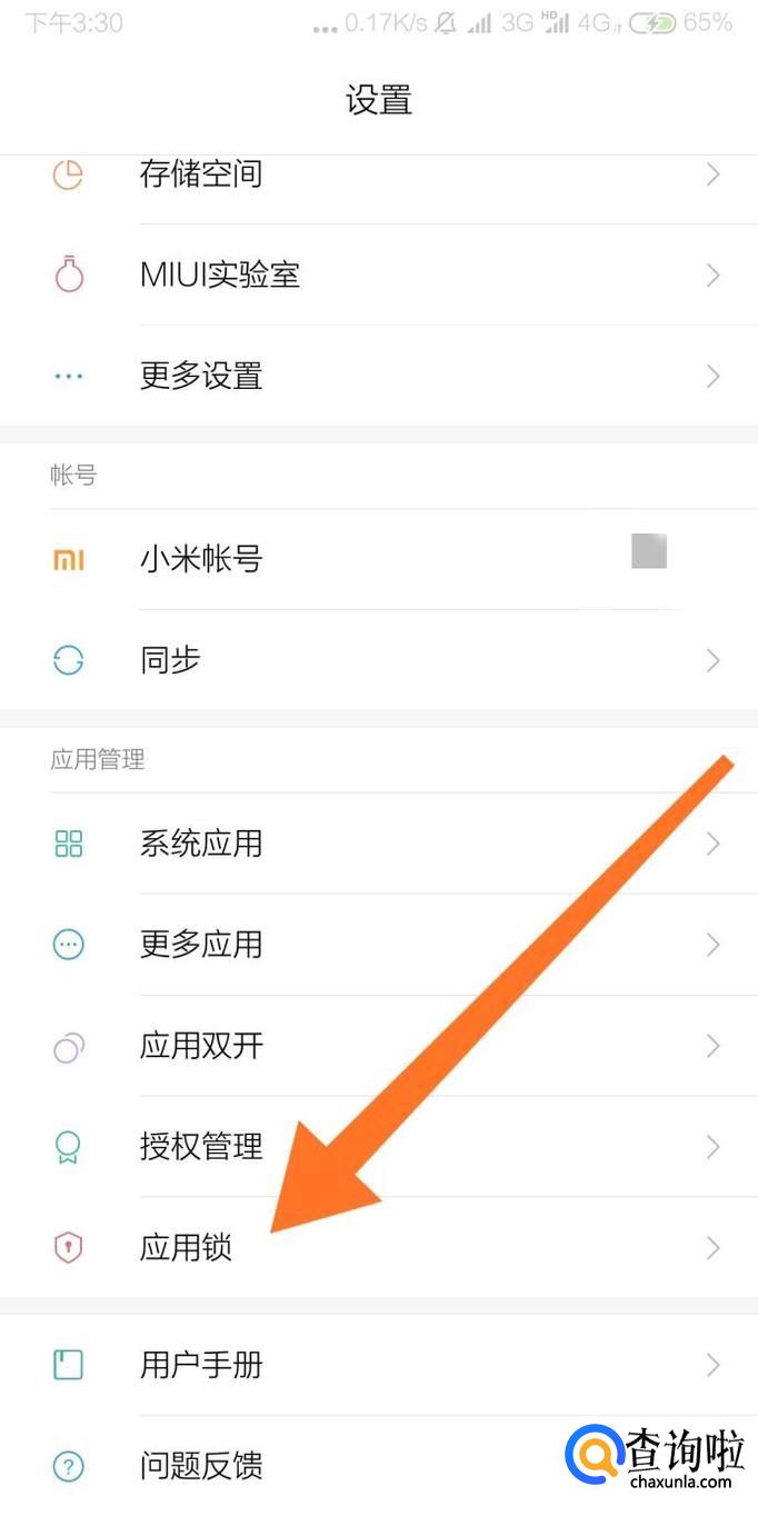 然后点击进入设置菜单最下方的“应用锁”设置选项。
