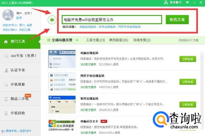 输入“电脑开免费wifi出现蓝屏怎么办”,之后就会出修复方案,点击立即修复。
