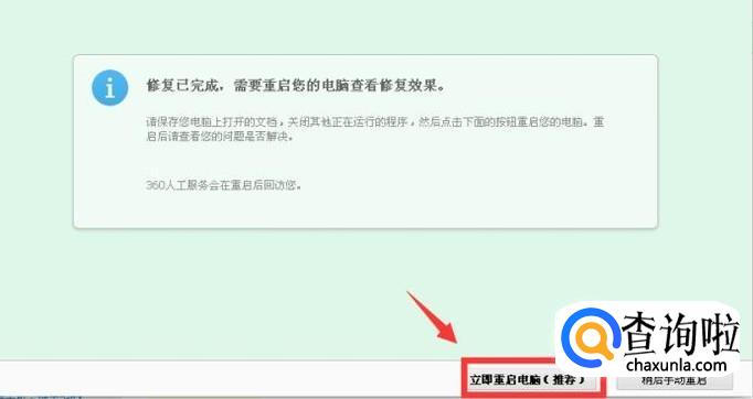 修复完成后,点击立即重启电脑。