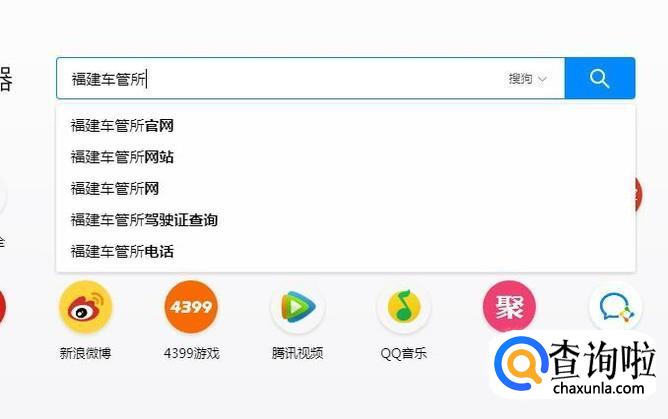 首先在搜狗浏览器中输入你的所在地的车管所并点击回车键,如下图所示。