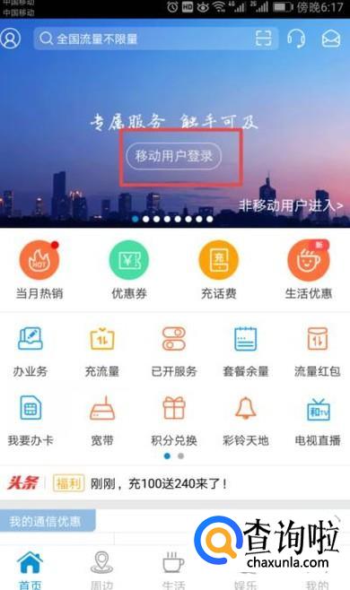 登陆成功后,我们点击查流量;