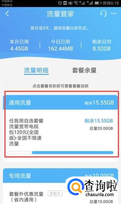 之后我们就可以看到我们手机剩余的流量了。