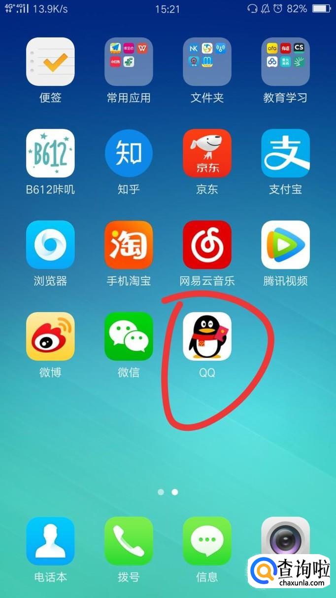 首先我们打开手机,找到qq的图标,然后点开。