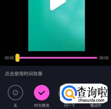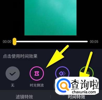 点击“特效”后,转到设置特效的页面;在底部这里点选“时间特效”;在这里就看到有“时光倒流”这一项。