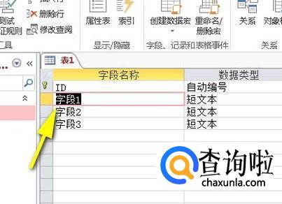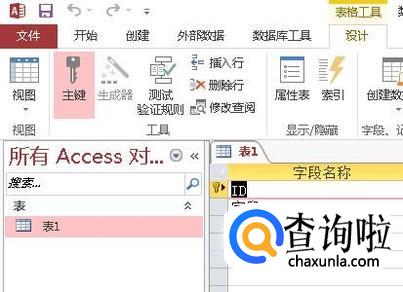 设置完成,看“字段1”左侧有主键标记。