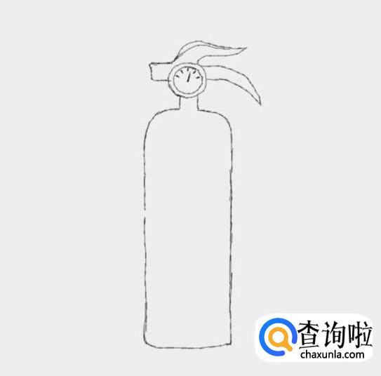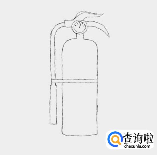 最后在罐体上画出灭火器固定喷气管的固定装置,这样我们的灭火器就画好了,如图所示: