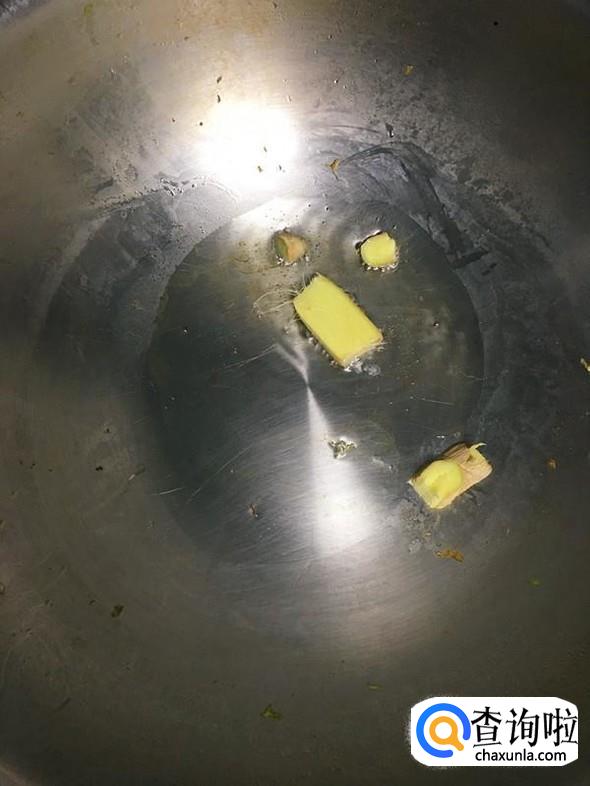 油锅烧热,放入姜片爆香。