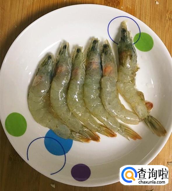 解冻后的大海虾剪去虾脚,挑去虾肠,再剖开虾背,这样炒制的时候更易入味。