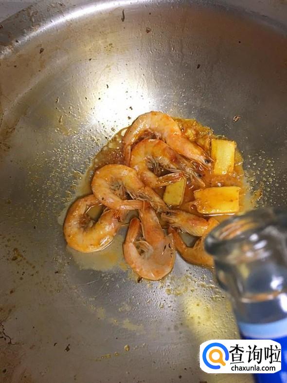 加入适量啤酒,使啤酒基本与虾持平。